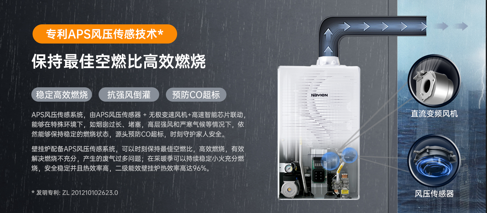 专利APS风压传感系统(专利号:ZL 201210102623.0) 更加充实的舒适的供暖和丰富的生活热水