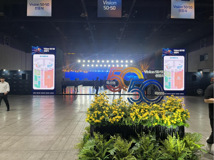 8月30日,庆东纳碧安韩国总部举行了主题为“Vision 50-50”的庆祝活动。这场盛大的活动不仅是对公司即将过去的50年辉煌成就的回顾,更是对未来50年可持续发展的坚定展望。3000多名庆东集团的员工及合作伙伴齐聚一堂,共同见证了这一历史性的时刻。